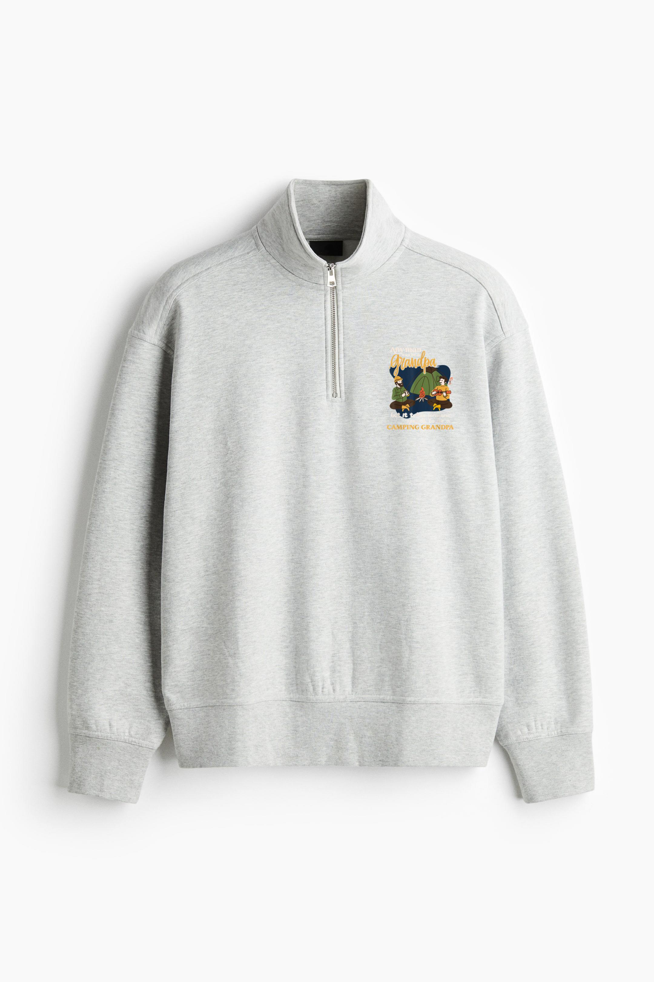 Any Man Can Be A Grandpa Camping Loose-Fit Sweatshirt Collar Jacket Loose-Fit Sweatshirt Collar Jacket – Casual Zip-Up Fleece Jacket with Ribbed Collar and Relaxed Silhouette