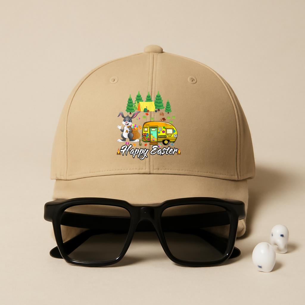 Easter Camping Bunny Eggs Happy Easter Day Baseball Cap Baseball Cap – Adjustable 6-Panel Cotton Hat for Sports and Everyday Wear