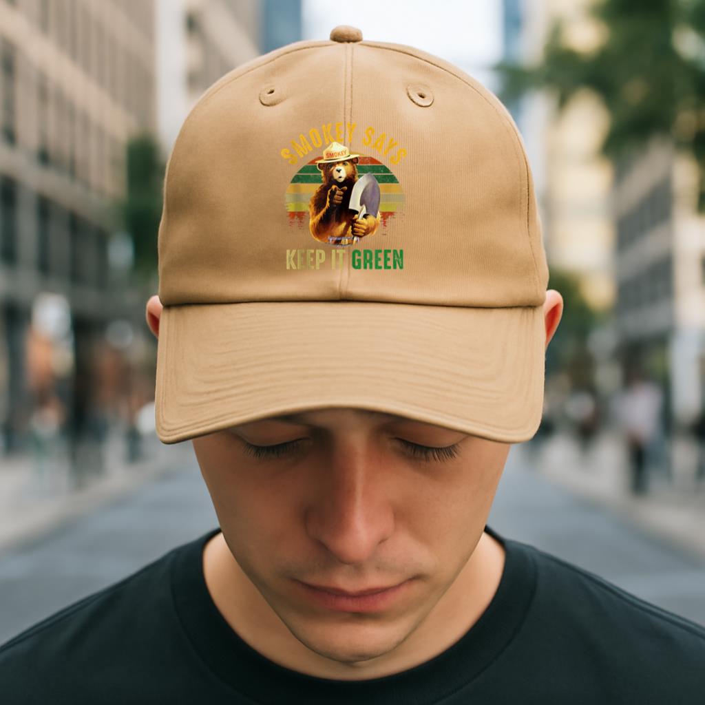 Smokey Says Keep It Green Camping Baseball Cap Baseball Cap – Adjustable 6-Panel Cotton Hat for Sports and Everyday Wear